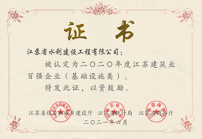 江蘇建筑業(yè)百?gòu)?qiáng)企業(yè)2022年度證書(shū)
